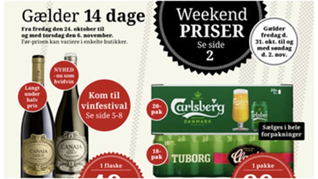 DagliBrugsen tilbyder også Carlsberg eller Tuborg øl i flere varianter. Du kan få en pakke med 18-20 x 33 cl. for kun 89 kr. Bemærk, at dette er et begrænset parti, så skynd dig at gøre en god handel. Tilbuddet gælder fra fredag den 24. oktober til torsdag den 6. november.